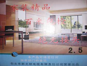 1、在入住新房前,大家都会先验房,但是多数市民都会将注意力集中在房屋结构上,对于墙内的电线却很少关心。如果把房屋比做一个人的话,那么隐藏在屋里的电线电缆就是至关重要的“大动脉”,电线电缆不仅关系着家庭正常的日常生活,更关系着家里的安全,劣质电线可能造成短路、触电,甚至引发火灾,本司在建材市场调查发现,大量非国标电线和劣质假冒电线充斥建材市场,有些劣质电线甚至一搓就断,因此,包头市新光明电缆有限责任公司经研究生产出家装精品系列电线,是本司专为广大家庭装修用户生产,基本解决了家庭装修用线知识溃乏而产生用电安全方面的漏洞。