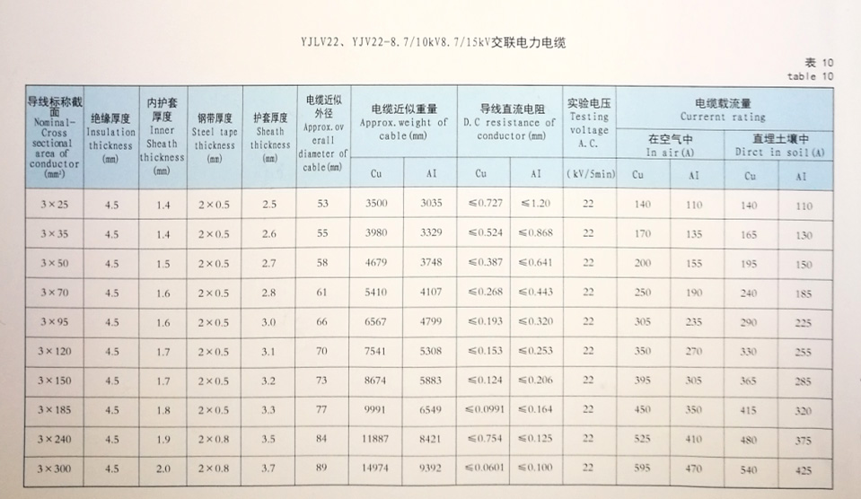 YJLV22、YJV22-8.7/10kV8.7/15kV交联电力电缆